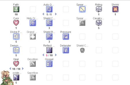 Auto Guard 10 Cavalry Mastery 5 Cure 1 Divine Protection 9